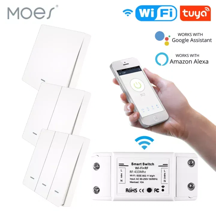 ZigBee Wall Touch Smart Light Switch with Neutral Wire/No Neutral Wire,No Capacitor Needed Smart Life/Tuya 2/3 Way Muilti-Control Association Remote Control Works with Alexa,Google Home Hub Required By Moes Main Features: 1.New design with neutral wire required and single live wire featured in one switch panel;No neutral wiring required for the single live wire version;Wire the neutral wire on the switch when needed;No capacitor needed for the new update version for better user experience without noise from electric current;Tuya Zigbee hub is required for the normal use of this switch,featured as much compatibility with tuya smart devices than any other hubs. 2.New idea for 2/3 Way circuit (two switches control one light)that is explained as multi-control association of this switch to other smart switches in App;ON/OFF relay status as remember last status when power off and backlight switch setting in Smart Life App for better sleep at night;capacitive touch control, turn on/off your light with a single touch and scratch resistance glass panelgives the best look to blend with any wall design.(Note:You can multi-control associate of this switch to multiple different switches,but several gangs on one switch is not available,only one gang on one switch can be associated for multi-control.) 3.Differ in features from traditional common switch,this smart switch is able to be controlled by various ways alone with the best value like App control,touch control and voice control;achieve multi-control by associating to other smart switches to get 2/3-way circuit for your house lights. 4.Compatible with Alexa,Google home and Yandex allows free voice control;remotely control devices and intelligent settings allowed on your smart phone via Smart Life/Tuya App wherever you are;Take full control of connected appliances with timers and schedules(1/5/30 mins, 1 hour, etc.) with the app; share control with family and friends for added convenience 5.No more worries about purchasing the wrong version for your house wiring limited;only supports 2.4G network;includes full 2-year warranty and 60-day refund guarantee for complete satisfaction