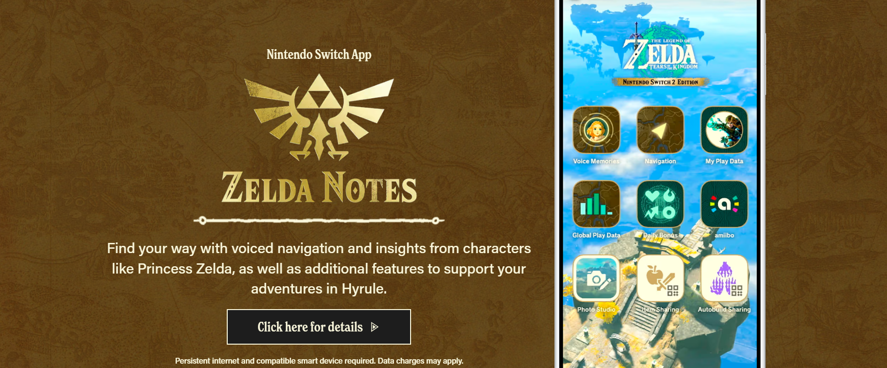 Use the ZELDA NOTES app to share, compare, and earn daily bonuses.